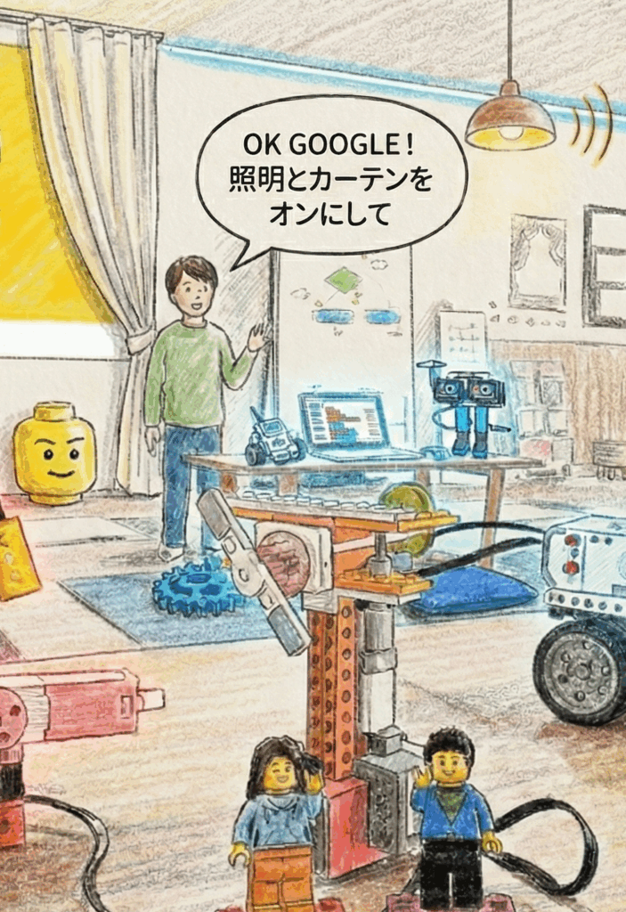 「OK GOOGLE!」と呼びかけるだけで制御できる照明やカーテン、プロジェクター、空調など。授業中でも「暗くして」や「28度にして」の音声で制御できるため、授業を中断することがなく、お子様の集中力が途切れることがありません。