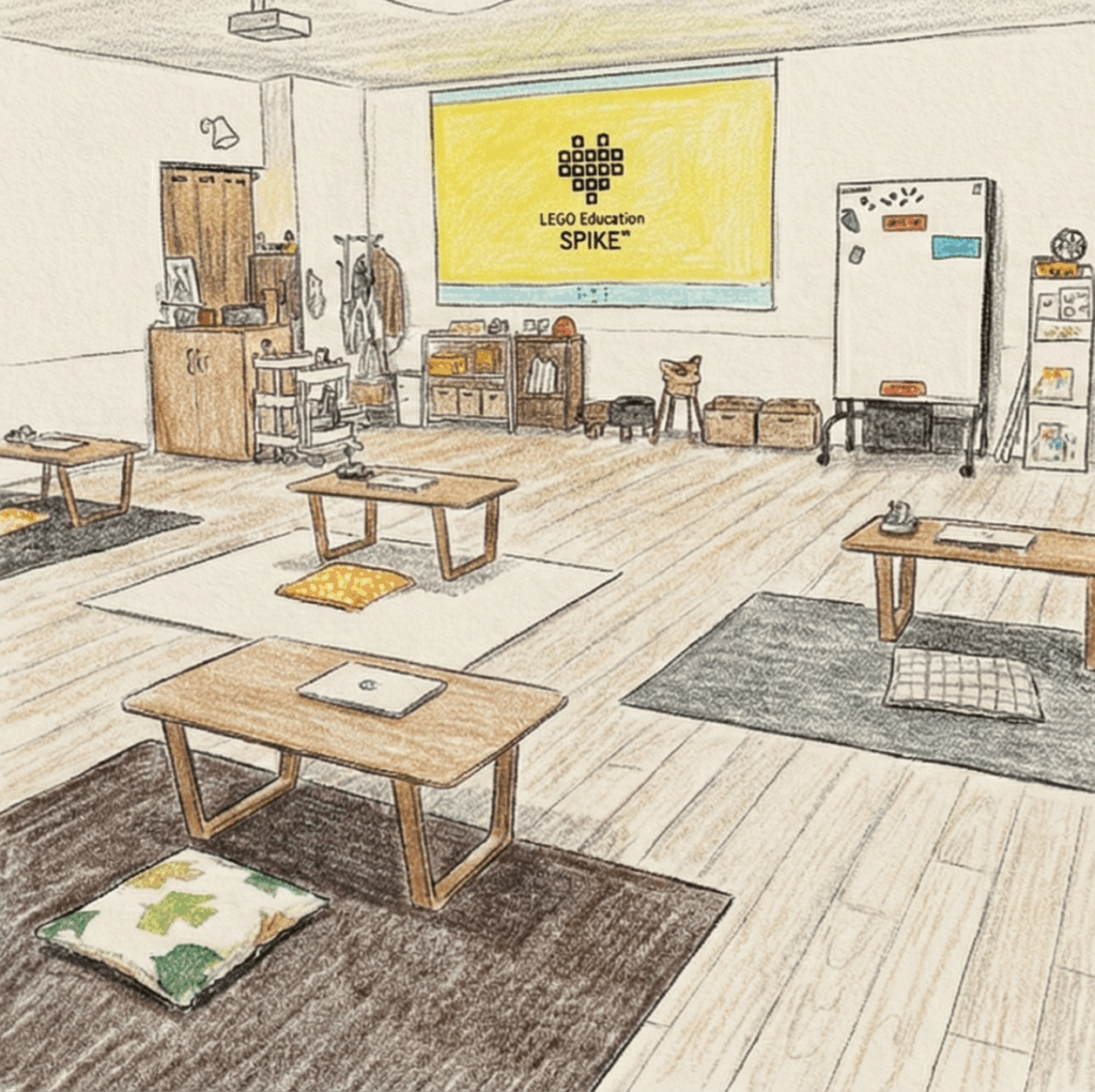 使用する教材「レゴ」の発祥地であるデンマークに合わせ、教室全体を温かみのある北欧デザインで統一しています。